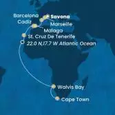 Genoa,Marseille,Malaga,Cadiz,Lisbon,Alicante,Mahon,Olbia,Genoa