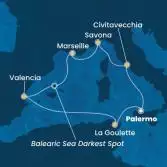 Civitavecchia,Palma de Mallorca,Barcelona,Cannes,Genoa,La Spezia,Civitavecchia